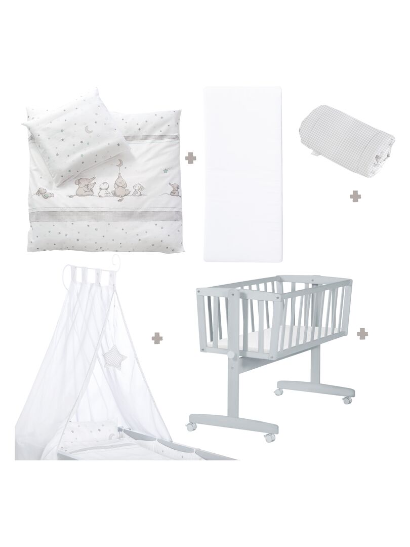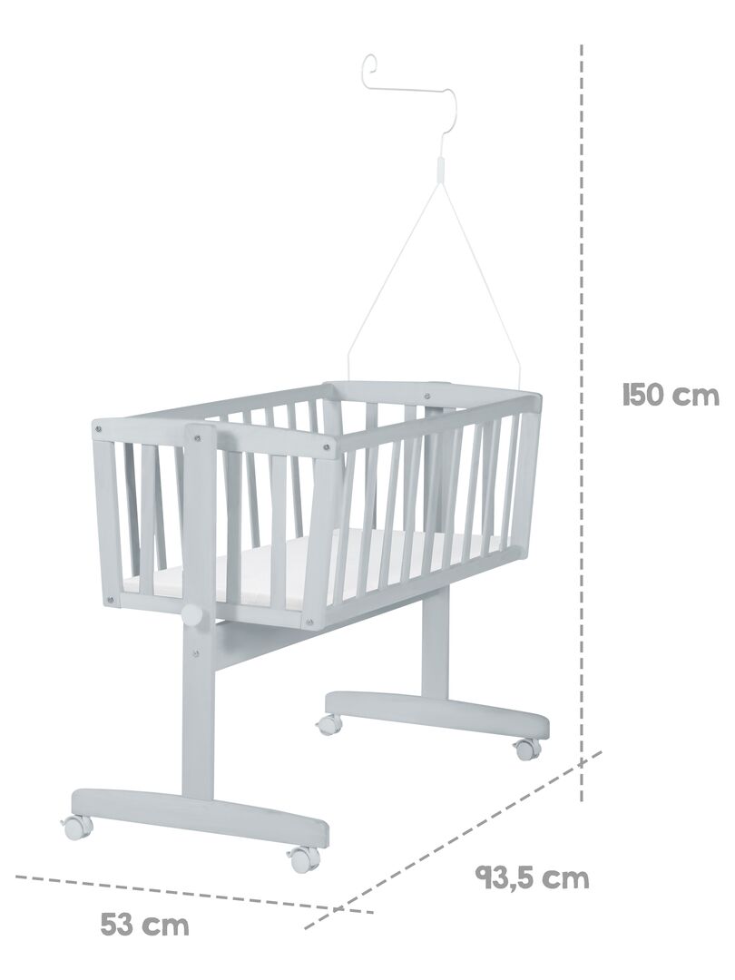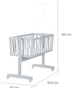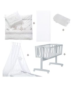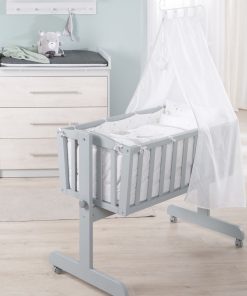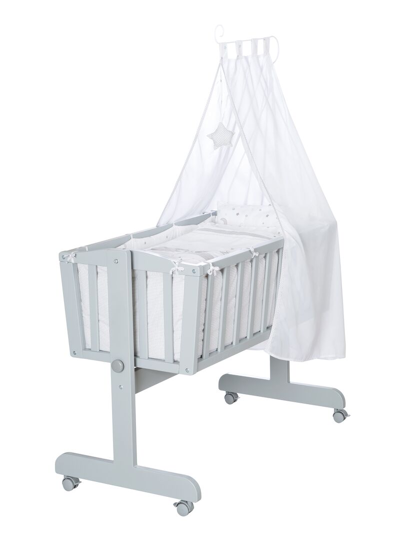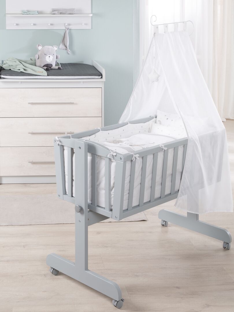 ROBA Berceau Stars 40×90 cm + Équipement Complet – Bois Laqué Gris – Gris