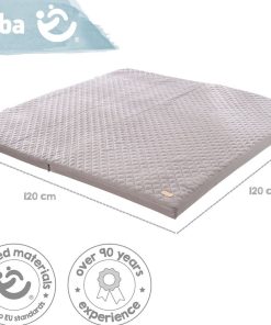 Le tapis de jeu et d’éveil pratique de roba est pliable et se transforme d’un tapis de jeu de 120 x 120 cm en un matelas pour lit d’enfant ou lit de voyage de 120 x 60 cm. Grâce au rembourrage doux, les enfants sont bien protégés des chutes et du froid du sol lorsqu’ils jouent et rampent. Ce tapis de jeu est donc une bonne alternative aux tapis d’éveil traditionnels. Une fois replié, le matelas en mousse peut être utilisé dans tous les lits de bébé de 120 x 60 cm ou pour les petits invités qui passent la nuit. Lorsqu’il est utilisé comme matelas de couchage 60×120 cm, son épaisseur devient 8 cm, lorsqu’il est déplié comme matelas de jeu, l’épaisseur est de 4 cm. Le tapis en mousse est recouvert d’une housse en microfibre piquée de couleur anthracite, elle est 100 % polyester et peut être retirée à l’aide d’une fermeture éclair et lavée à 40°. Le noyau du matelas est en mousse PU testée. Tous les textiles utilisés sont certifiés et sont régulièrement contrôlés au cours de la production quant à la présence de substances nocives.