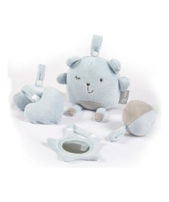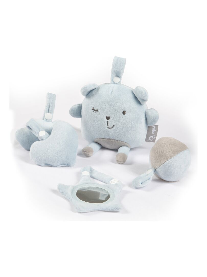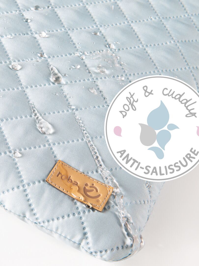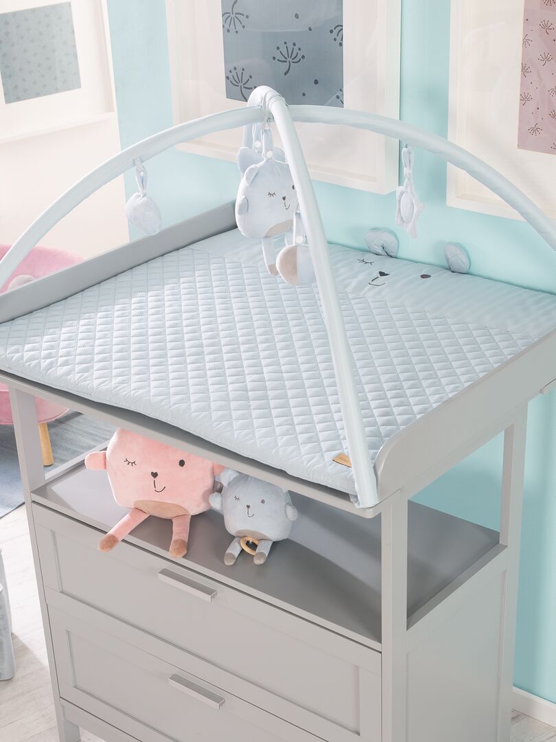 Le tapis d’activité et de rampement moderne « roba Style » en bleu clair attire tous les regards avec son adorable visage d’ourson “Benny” et ses deux oreilles. Les 5 jouets suspendus y compris l’agréable ourson en peluche sont idéaux pour explorer les couleurs, les textures et les sons, et offrent de la variété pendant les soins et les changements de couches de bébé.Tous les matériaux utilisés pour le tapis et ses accessoires sont certifiés et contrôlés régulièrement pendant la production. Tous les produits roba sont créés sur la base de ses 90 années d’expérience, développés selon les normes de sécurité européennes, pensés avec intelligence et faits pour les familles. La collection « roba Style », moderne et de haute qualité, comprend des produits pour bébés équipés de textiles en microfibre matelassée agréablement doux et facile à entretenir. Les produits convainquent par leur look tendance qu’ils intègrent dans chaque pièce. Découvrez d’autres articles dans le style « roba Style », tels que : Des nids de bébés, des matelas à langer ou des parures de lit.