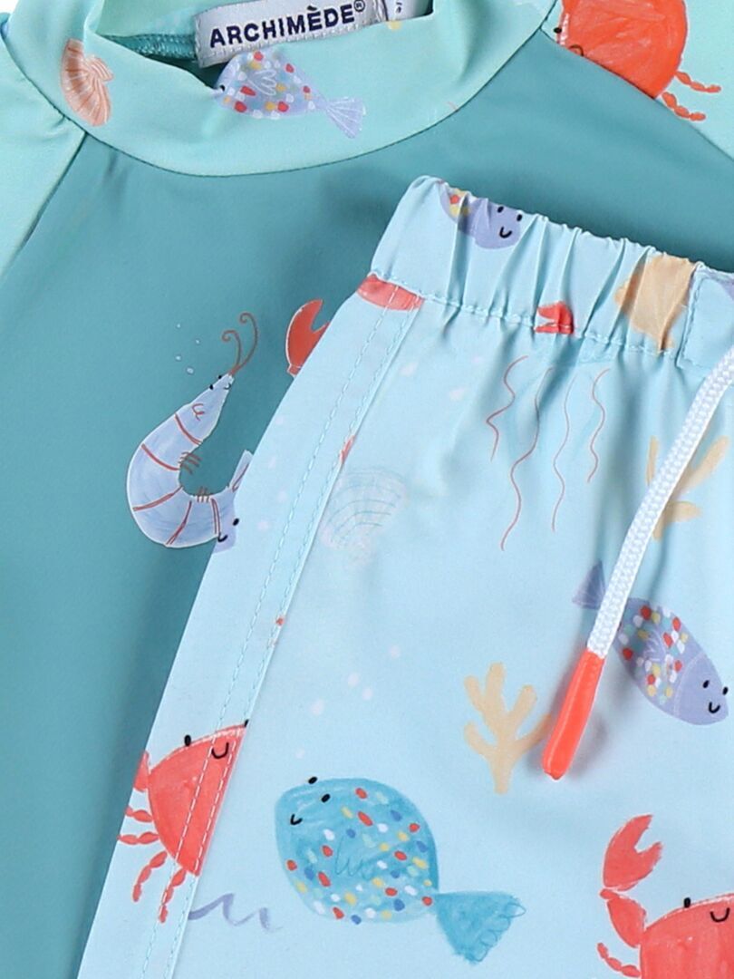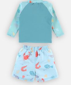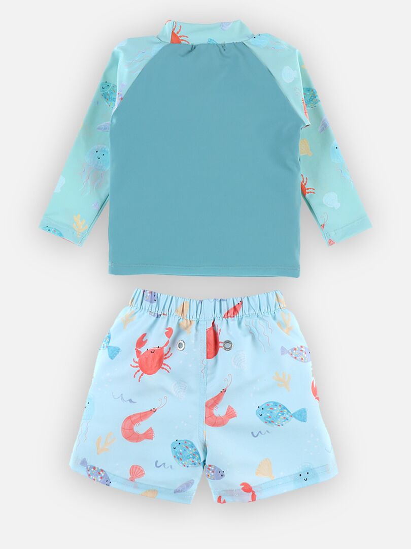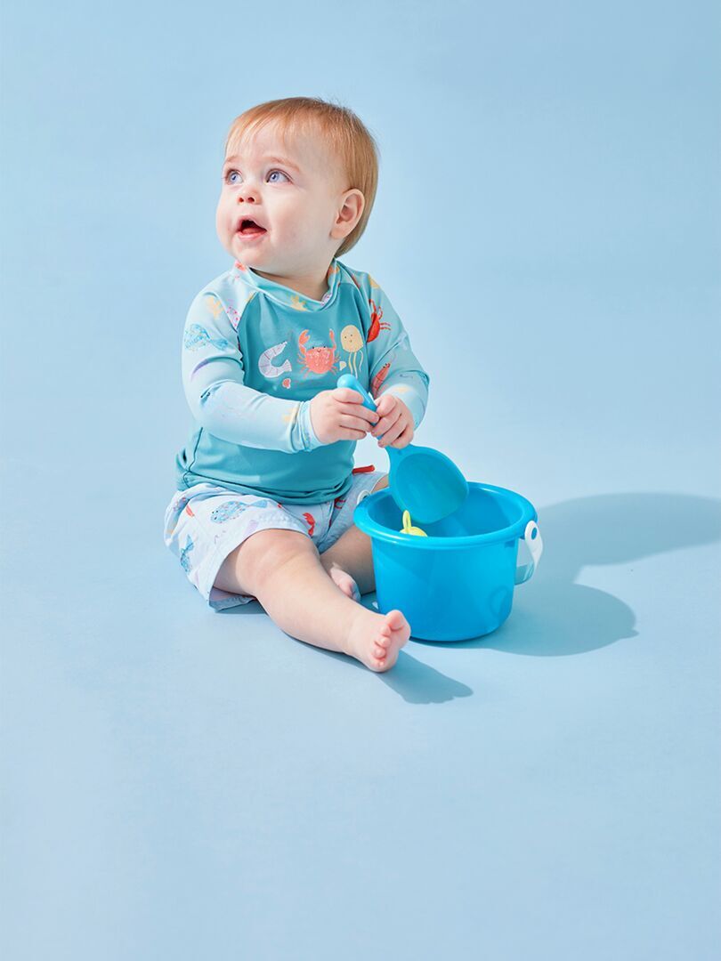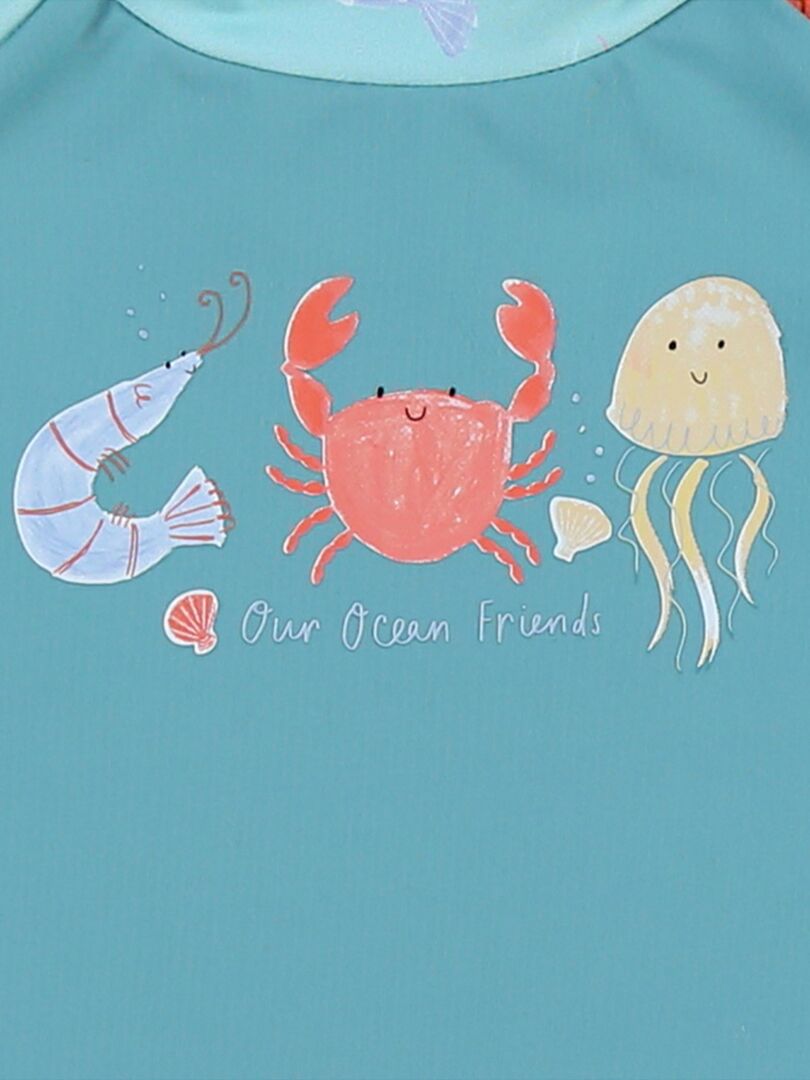 Information tailles : 6M correspond à la taille 3-6M12M correspond à la taille 9-12M Le set protection UV aqua imprimé de jolis animaux de la mer composé d’un top à longues manches et d’un short de bain protège votre enfant des rayons UVA et UVB. Votre enfant est prêt à partir en quête d’aventures aquatiques ! Anti-UV: il/elle est doté/dotée d’un indice de protection UPF50+ Couvrant: il/elle protège la peau sensible des enfants Conçu en collaboration avec des dermatologues Attention: Les parties du corps découvertes doivent être protégées par un produit solaire à haut indice, des lunettes et un chapeau. La protection peut diminuer avec le temps s’ils sont distendus ou mouillés. Composition : 85% Polyamide 15% elasthanne