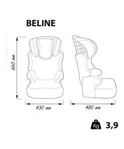 Siège auto BELINE groupe 1/2/3 pour les enfants de 9 à 36kg, homologué selon la norme ECE R44/04, fabriqué et testé en France dans des conditions de réglementations très strictes. Le siège auto s’installe uniquement face à la route à l’arrière du véhicule avec la ceinture de sécurité 3 points. L’installation est simple et rapide, il est obligatoire d’utiliser la notice du siège auto afin d’éviter les erreurs d’installation. Le siège auto BELINE est équipé d’un harnais 5 points avec double réglage qui s’utilise de 9 à 18kg, puis à partir de 15kg, l’enfant peut être attaché directement avec la ceinture de sécurité 3 points. C’est un siège auto léger et confortable pour l’enfant. A partir des 15 kg de l’enfant, le siège auto se transforme en rehausseur dossier sans harnais, merci de bien vous référer à la notice pour retirer le harnais. L’enfant s’attache donc avec la ceinture de sécurité. Le siège suit l’évolution de votre enfant, en effet le siège est équipé d’une têtière recourbée qui assure une protection latérale en cas de chocs, et qui se règle en plusieurs positions afin de s’adapter à la morphologie de l’enfant. Le siège auto BELINE est un siège auto Made in France, évolutif, qui convient aux enfants de 2/3 ans à 10 ans. Le siège est déhoussable et lavable à la main.