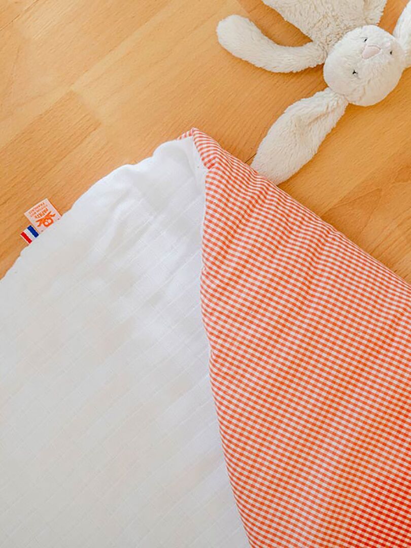 Conçu en double gaze de coton BIO certifié GOTS, sa douceur préserve la peau de bébé.