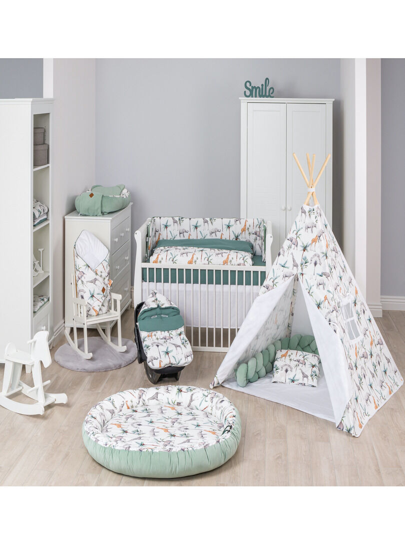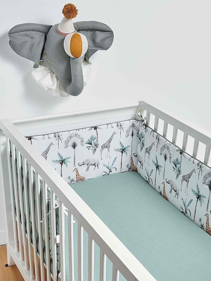 Le tour de lit de la Collection Safari est parfait pour offrir à Bébé un sommeil en toute sécurité et s’adapte aux lits bébé de 60×120 ou 70×140 cm.