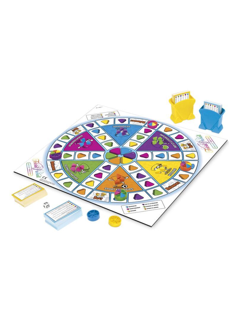 Seul ou en équipe, le but est d’être le premier à remplir son camembert en répondant correctement aux six catégories de questions et en obtenant les triangles correspondants. La version idéale pour les parties rapides en famille grâce : aux 1 200 questions spéciales enfants et aux 1 200 questions spéciales parents, à la face triangle du dé qui vous permet de choisir la catégorie de la question, à la possibilité de remporter un triangle marqueur sur toutes les cases du plateau A partir de 8 ans Attention ! Ne convient pas aux enfants de moins de 36 mois (3 ans)