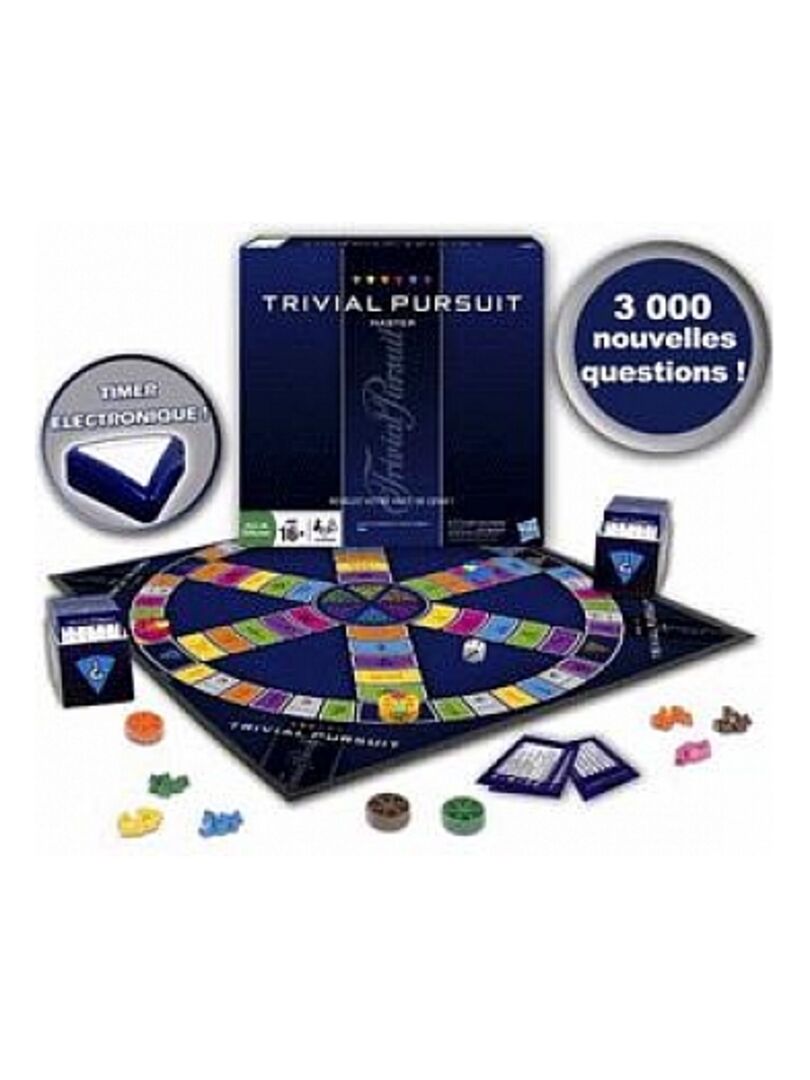 Trivial Pursuit MasterProduit: 16762Age: 16+Version relookée du Trivial Pursuit Genus, le célèbre jeu de questions-réponses !Il faut être le premier à remplir son camembert en répondant correctement aux questions et en obtenant les triangles correspondants.Avec 3000 nouvelles questions et timerélectronique.Pour 2 joueurs, dès 16 ans. A partir de 16 ans et + Attention ! Ne convient pas aux enfants de moins de 36 mois (3 ans)