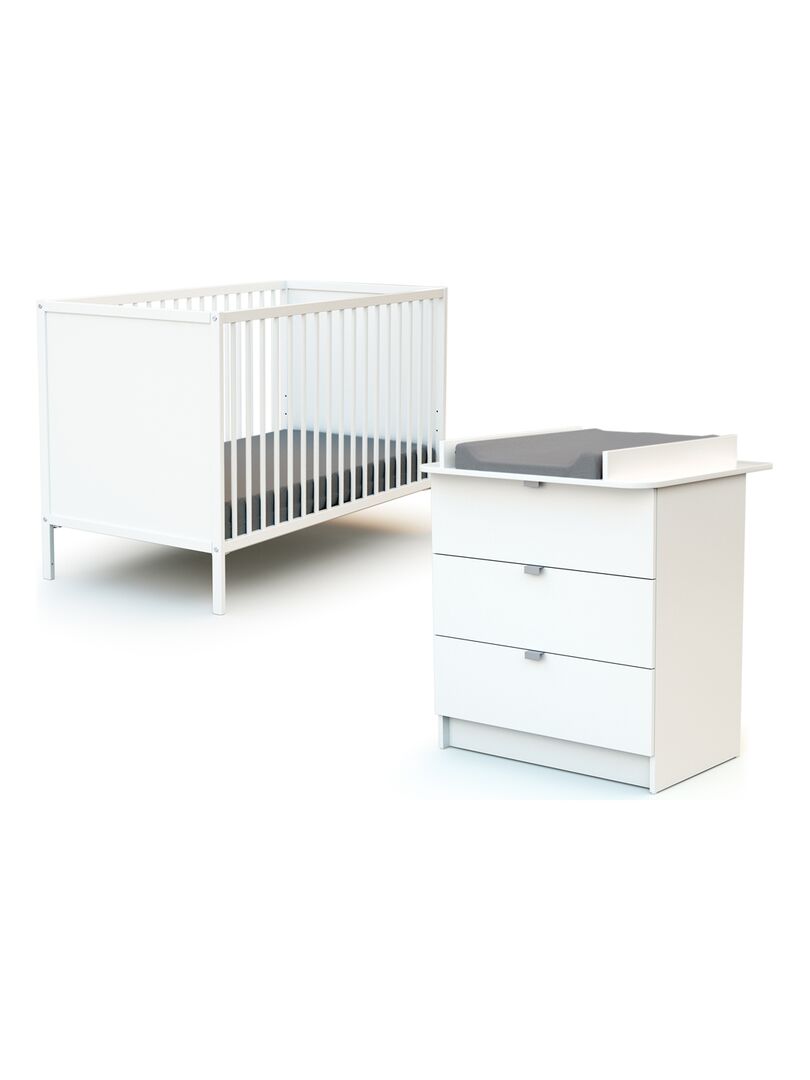 – Une commode à langer élégante. Elle offre un large espace de rangement et s’utilise longtemps grâce à son plan à langer amovible. Lit bébé :