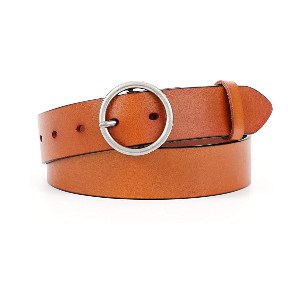 Women Casual Dress Belt Fashion Leather Belt with O Ring Buckle for Jeans Pants