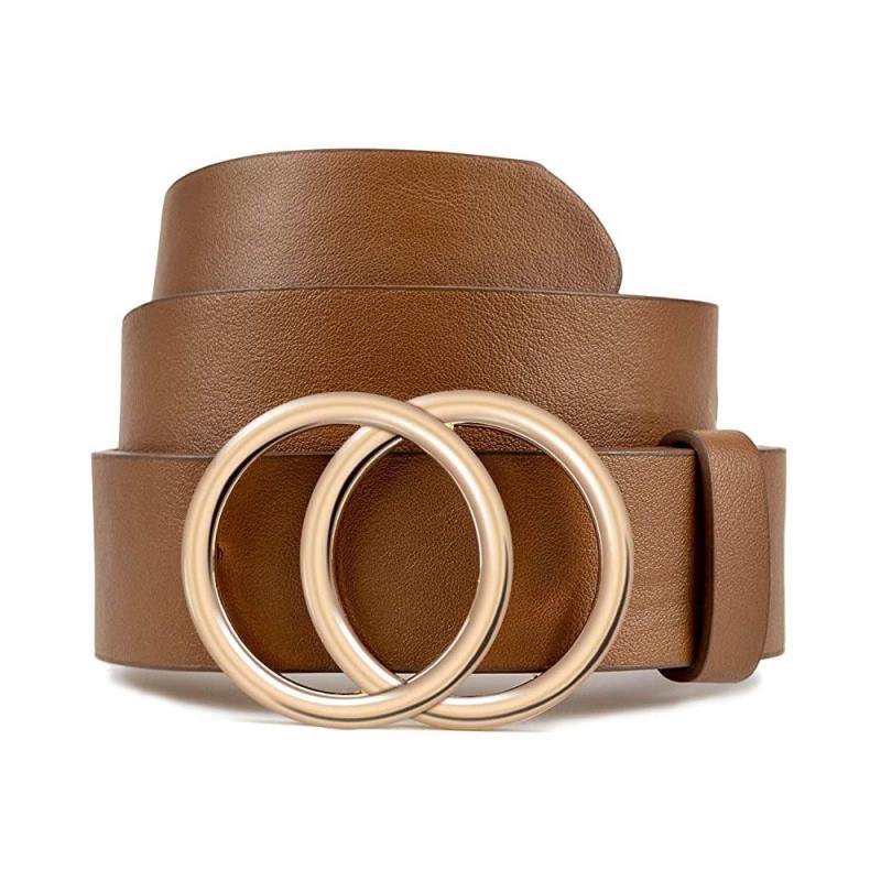 - Belts for women adds a pop of style and class, brown women belt made of high quality Faux leather with vintage gold double O-Ring buckle. women fashion belt are stylish and great with jeans, Pants,shorts or dress. Leather Belt women suit for casual, business occasion in four seasons. It will complete your outfits.