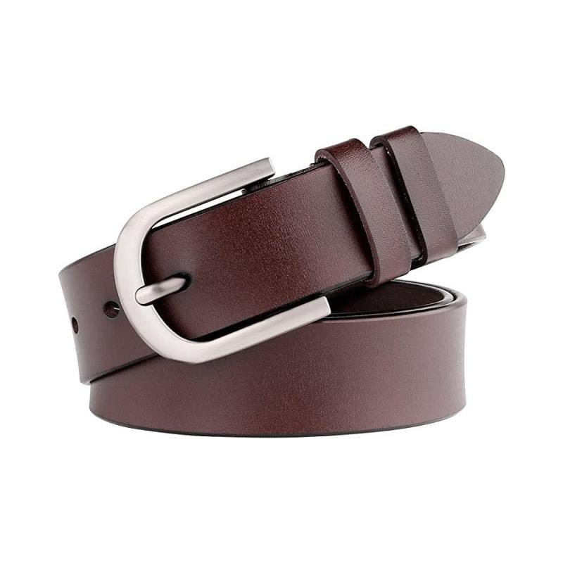 Women Leather Belt with Solid Metal Buckle, Ladies Belt for Pants Jeans with Fashion Design