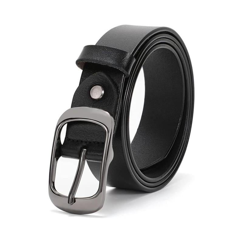 Women Leather Belt with Solid Metal Buckle, Ladies Belt for Pants Jeans with Fashion Design