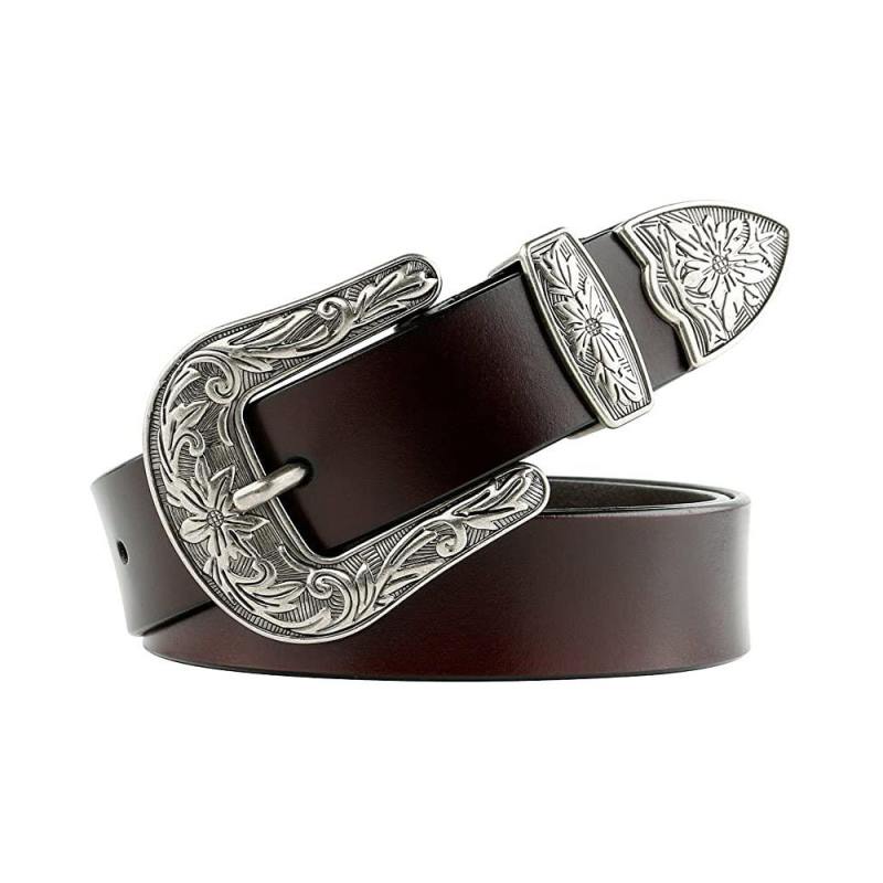 Women Leather Belts Ladies Vintage Western Design Black Waist Belt for Pants Jeans Dresses