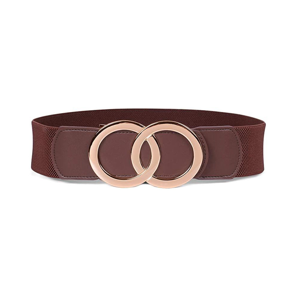 Women Stretchy Wide Waist Belts, Ladies Elastic Belt for Dresses Double Ring Buckle