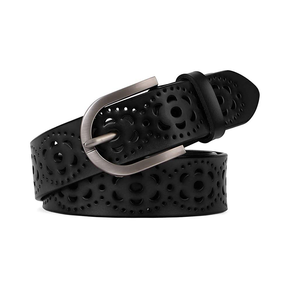 Women’s Hollow Flower Leather Belt for Jeans Pants Wide Belt for Ladies