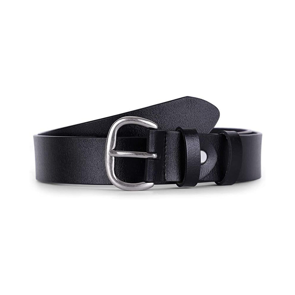Women’s Black Leather Jeans Belt Waist Casual Belt for Pants Shorts with Black Metal Buckle