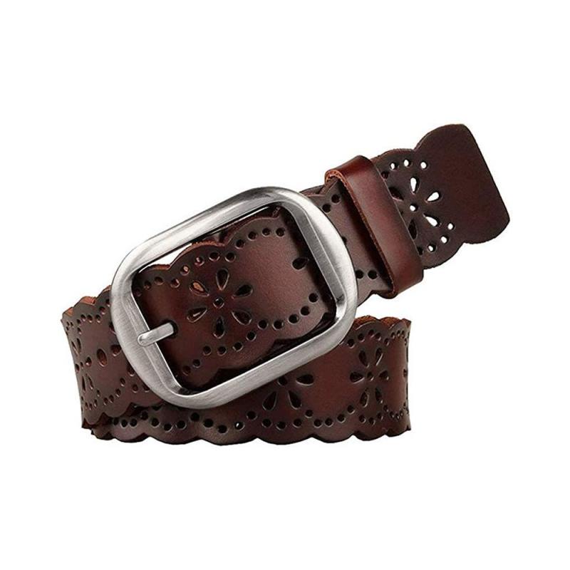 Women’s Hollow Flower Leather Belt for Jeans Pants Wide Belt for Ladies