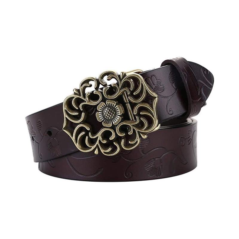 - Vintage Stylish: Flower-pattern carved on belt strap & hollowed-out vintage flower buckle;This retro & western designed adjustable belt is is easy to use and stays firmly. Whatever you pair to with, it will look super cute as an add-on.