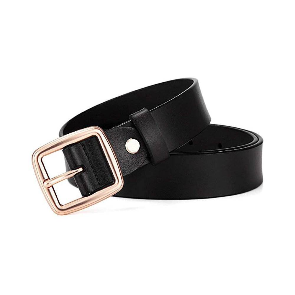 Women Leather Belts Ladies Vintage Western Design Black Waist Belt for Pants Jeans Dresses