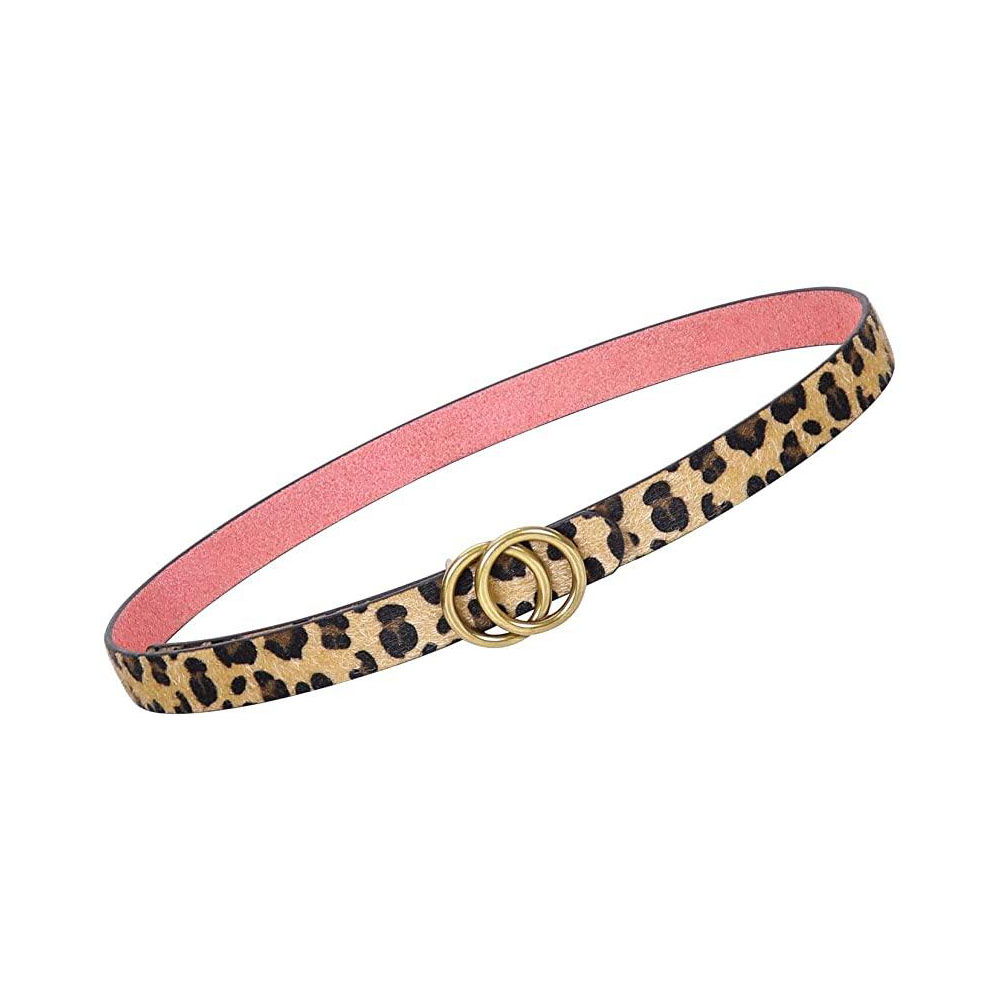 Women’s Leather Skinny Belts for Dress Jeans Pants Fashion Leather Belt with Double O Ring Buckle
