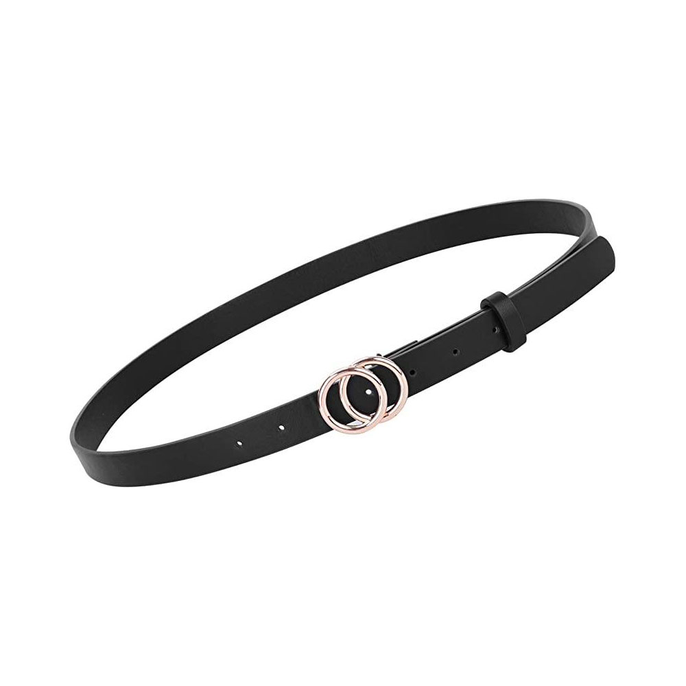 Women’s Leather Skinny Belts for Dress Jeans Pants Fashion Leather Belt with Double O Ring Buckle