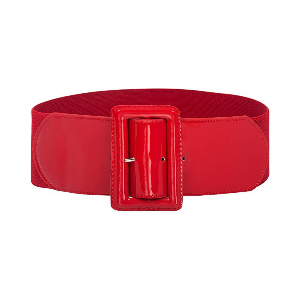 - Fashion Vintage Style: Elastic band in vintage chunky buckle belts for women dress in any seasons,This gorgeous patent leather belt is a must have accessory for any wardrobe.