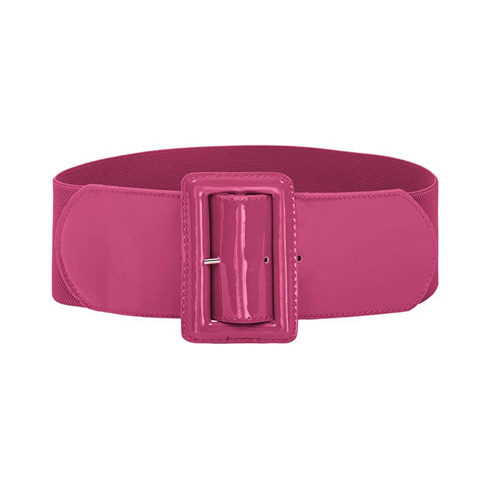 - Fashion Vintage Style: Elastic band in vintage chunky buckle belts for women dress in any seasons,This gorgeous patent leather belt is a must have accessory for any wardrobe.